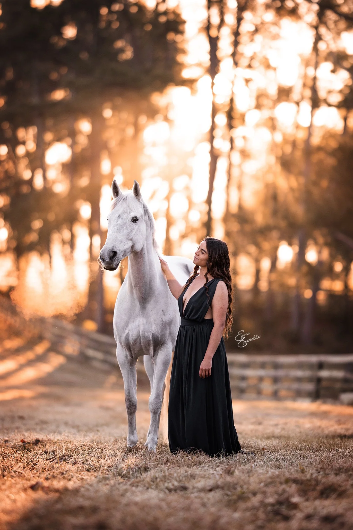 I have been lucky enough to own my gray mare since 2014 when she was a 3 year old, slaughter house rescue. Being owned by an AO, Miss lives the good life, full of bunches of bananas and plenty of scratches. She is full of sass and never fails to make us laugh from constantly smiling to her whinnies to the studs walking by. My first ever paid photoshoot actually lead to me meeting my hija, and she is the reason I am still in the sport.
